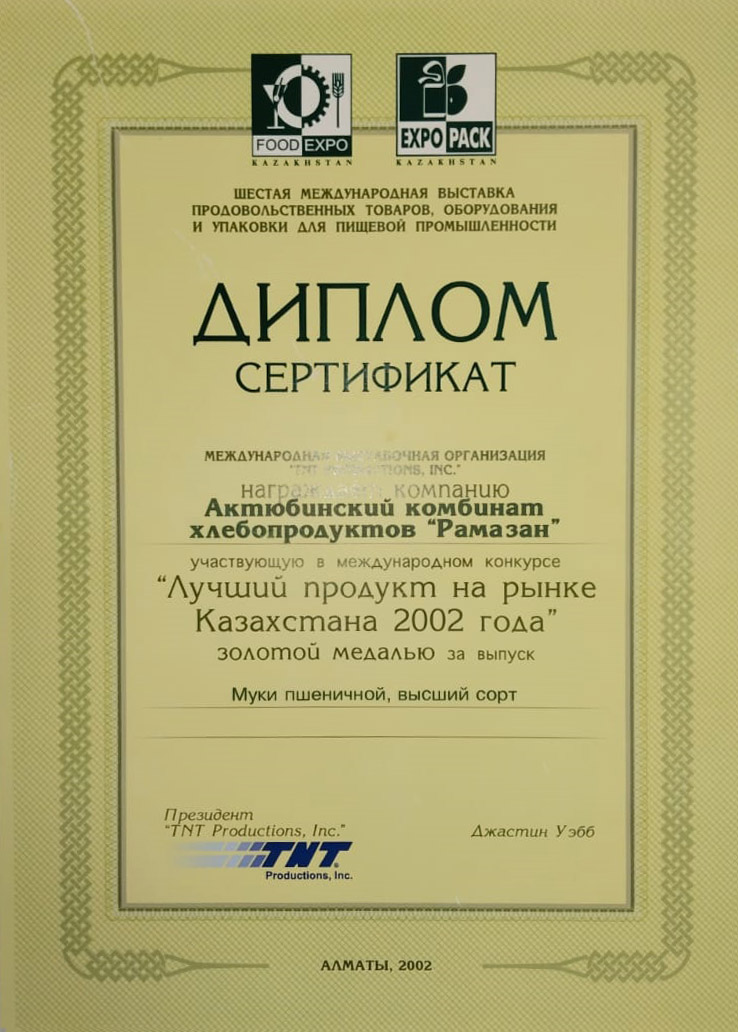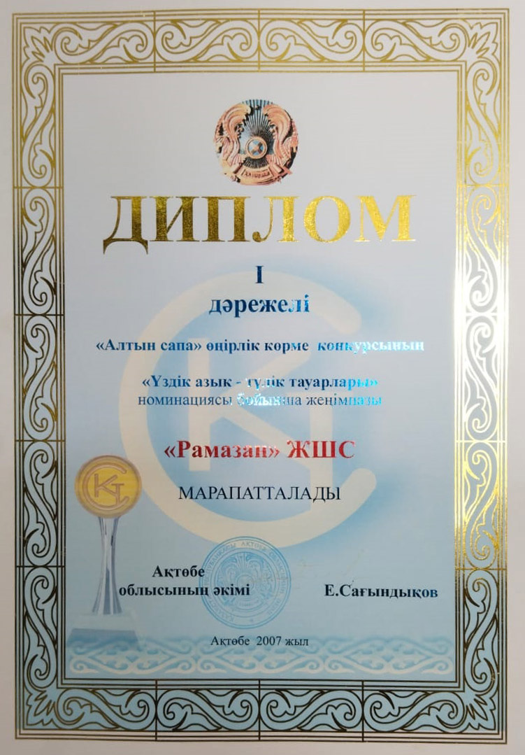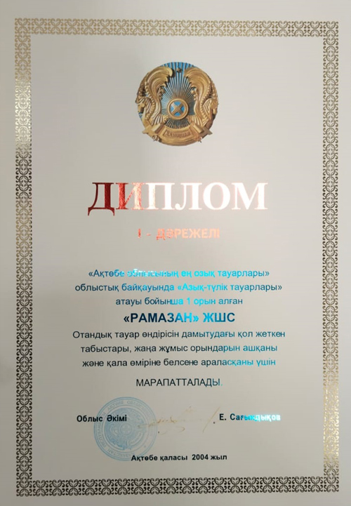 Ishlab chiqarilayotgan «RAMAZAN» mahsulotlari sun’iy komponentlar va GMO ishlatilmasdan, turli kimyoviy va biologik qo‘shimchalarsiz tayyorlangan ekologik toza mahsulotlardir. KG «Ramazan» mahsulotlarining barcha liniyasi «Halal» sertifikatiga ega.